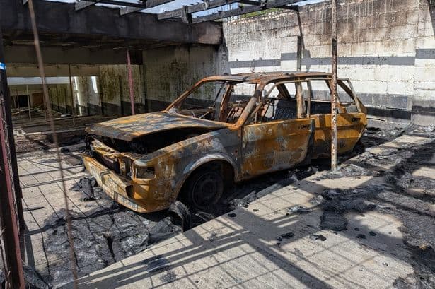 Fire at derelict Derbyshire car dealership 'frozen in time' renews demolition calls